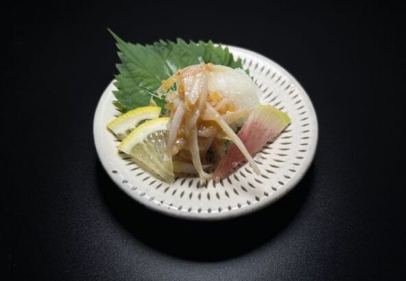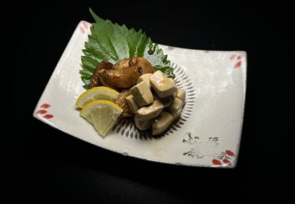 御来店されたお客様の9割以上から御注文を頂くこの逸品は、お酒にもピッタリ。当店ではワサビと一緒に召し上がっていただきます。
