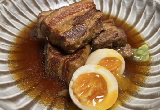 ぶん福茶がまの名物と言えば魂の煮込み。その中でも外せないのが旨味の強い肉質と甘みのある脂のバランスが特徴の糸島豚を、カツオ出汁と鹿児島産の特選醤油で箸で切れるほど柔らかく丁寧に炊き上げた角煮です!