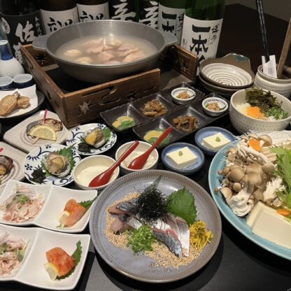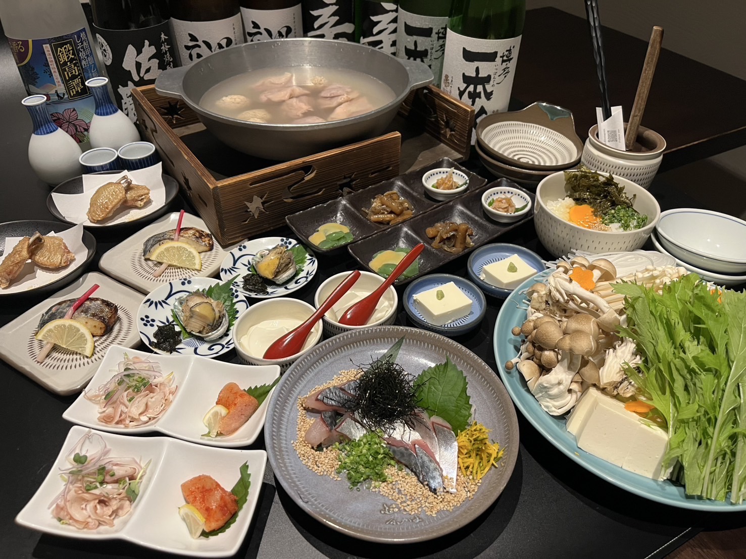 名物の絶品ごまさばに茶がま自慢の一品、濃厚博多名物水炊きがこのお値段!